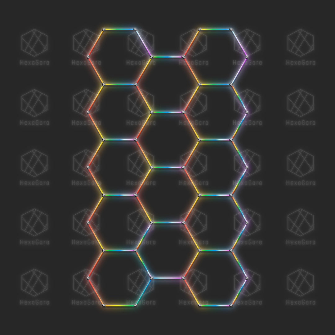 Ignite your imagination and revolutionize your space with our stunning RGB Hexagon Lights Grid, pre-configured to span an impressive 8 feet by 13 feet 11 inches. This dynamic system features 14 individual hexagonal LED panels designed to create a vibrant, color-changing honeycomb pattern. Perfect for large garages, high-energy gyms, immersive game rooms, or any area demanding both powerful illumination and a customizable, modern aesthetic.