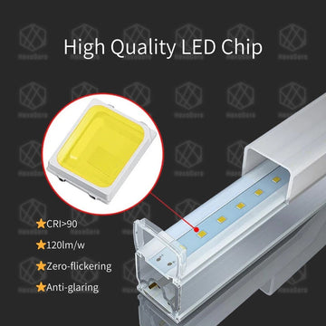 Chaque tube lumineux peut projeter jusqu'à 120 lumens/W, avec un indice de rendu des couleurs de >90Ra. Lumineux, sans scintillement et antireflet.